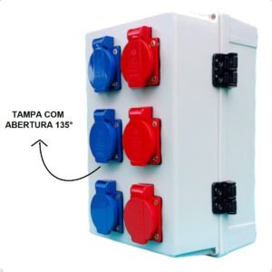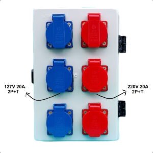 • 3 Tomadas azul 127V 20A com tampa IP44 (equipamentos de maior potência, padrão brasileiro)