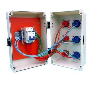 • 3 Tomadas vermelhas 220V 20A com tampa IP44 (equipamentos de maior potência, padrão brasileiro)