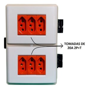 • 6 Tomadas vermelhas 220V 20A Tramontina (equipamentos de maior potência, padrão brasileiro)
